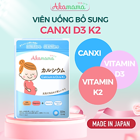 ✨Canxi D3 K2 Cho Mẹ Bầu Hỗ Trợ Phát Triển Hệ Xương Của Bé, Viên Nhỏ, Không Vị, Dễ Uống Gói 120 Viên Akamama Nhật Bản