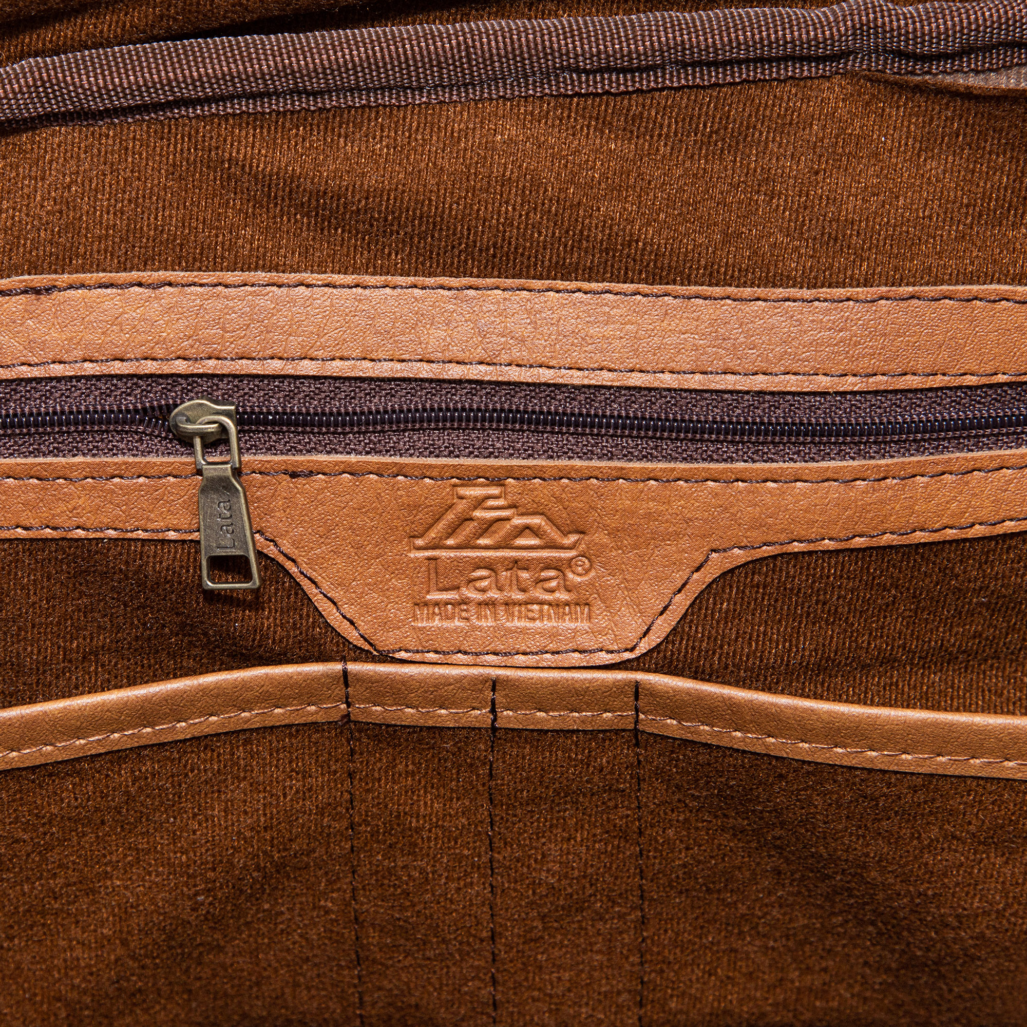• Trang trí nắp gập đơn giản cùng logo LATA dập chìm vô cùng sang  trọng.