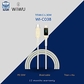 ✨Cáp sạc hàng chính hãng WiWU Titan C to L Wi-C038, siêu bền, PD30W, có màn hiển thị
