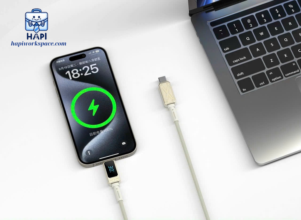Thiết kế tối giản với độ dài 1.2m tương thích nhiều thiết bị, có thể đáp ứng hầu hết những nhu cầu sử dụng hàng ngày Công suất tối đa 30W với màn hình hiển