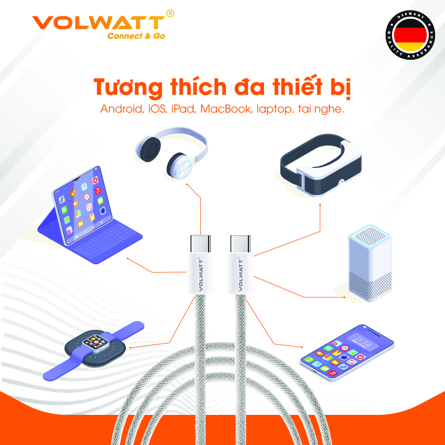 Cáp sạc siêu nhanh & truyền dữ liệu tốc độ cao Volwatt GE-038-CC – Giải pháp tối ưu cho nhu cầu sạc nhanh 60W và truyền dữ liệu ổn định cho nhiều thiết bị. 1.