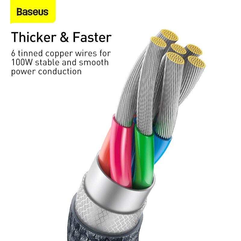 Cáp sạc nhanh Baseus 100W 2 đầu Type-C. Dây dù. Dài 1m. Bảo hành 06 tháng. 190.000đ