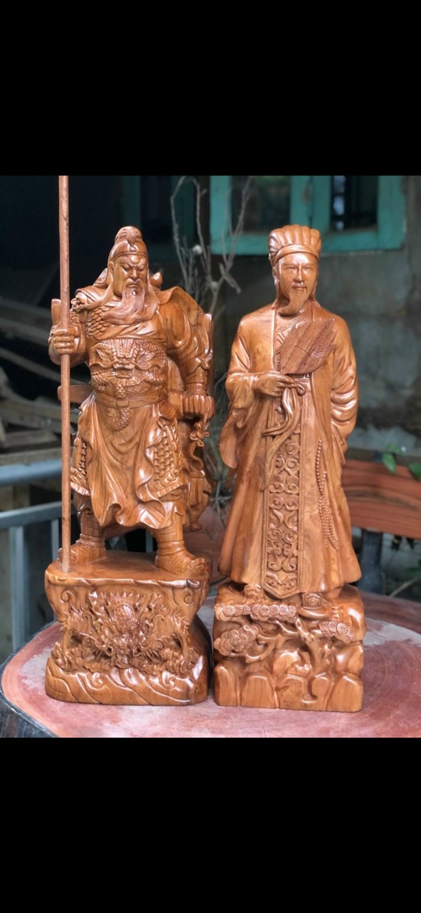 Mua tại Tiktok_Tượng quan công và gia cát lượng được làm bằng chất liệu gỗ hương đá tự nhiên 100%