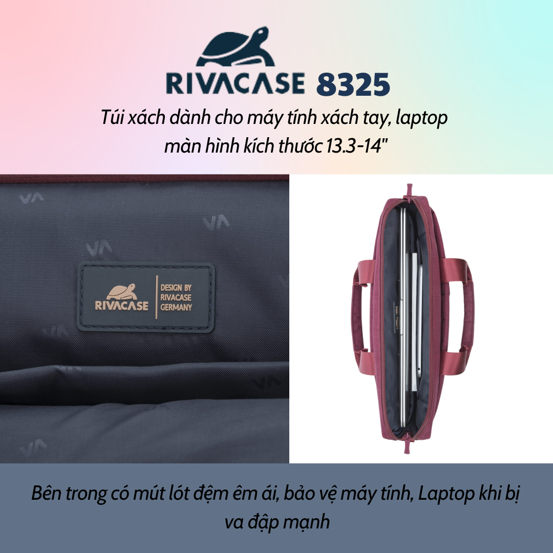 Với thiết kế nhỏ gọn, đơn giản mà sang trọng, túi xách Laptop Rivacase 8325 là sự lựa chọn hoàn hảo cho dân văn phòng, các doanh nhân và các bạn sinh viên dùng cho việc đi học/đi làm hằng ngày hoặc đi công tác. Rivacase 8325 cung cấp không gian chứa đồ đạc tối đa cho người dùng bao gồm một ngăn chính rộng rãi được thiết kế đệm êm dành cho máy tính xách tay 13.3-14”, cùng hai ngăn phụ bên trong phù hợp chứa tất cả các phụ kiện cần thiết như sách vở, tài liệu và máy tính bảng 10.1”. Ngoài ra, hai túi phía trước thích hợp dành cho các phụ kiện nhỏ như smartphone, sạc dự phòng, bút viết, danh thiếp…