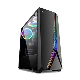 - Khung thân SPCC 0.5T sơn phủ đen - Kích thước nguồn ATX - Kích thước MB ATX - Mặt trước Kính cường lực - Mặt trên Vỏ bọc từ - Mặt trái Kính cường