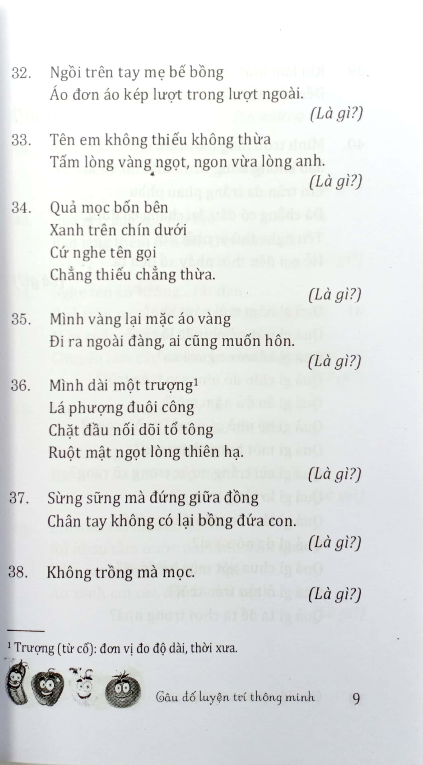Mua tại TiktokCuốn sách không chỉ đưa ra những câu đố vui mà còn gợi ý tò mò cho các bé, giúp cho các em biết được thêm về thế giới xung quanh mình thông qua những câu đố vui: học mà chơi,chơi mà học như vậy! Bố mẹ hãy đặt câu hỏi và cùng suy luận với con em mình để giúp bé rèn luyện sự nhanh nhạy.