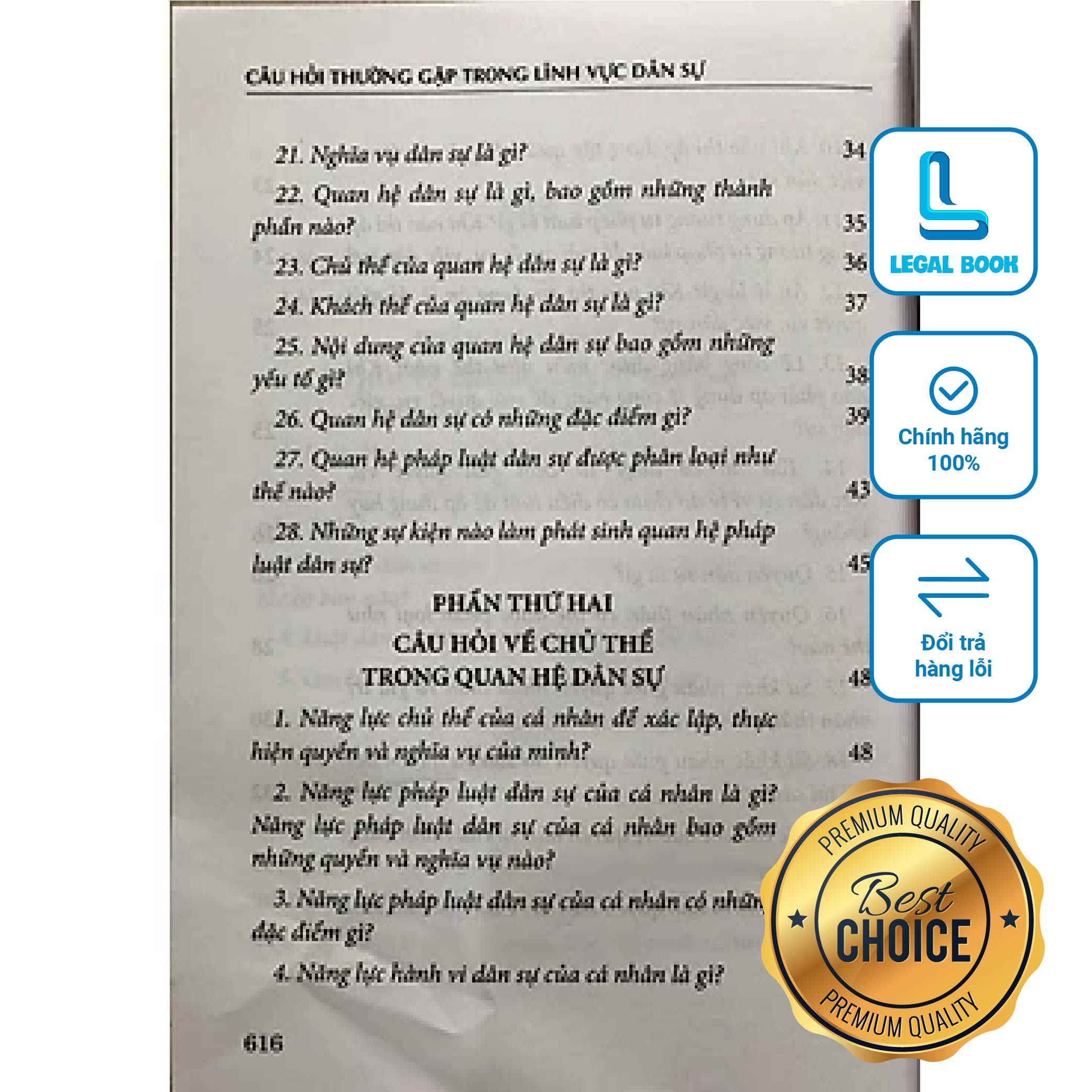 Với mục đích góp phần nâng cao hiệu quả thực thi pháp luật và đáp ứng nhu cầu nghiên cứu, tìm hiểu của bạn đọc. Nhà xuất bản Tư pháp phát hành cuốn sách: "Câu hỏi thường gặp trong lĩnh vực dân sự".