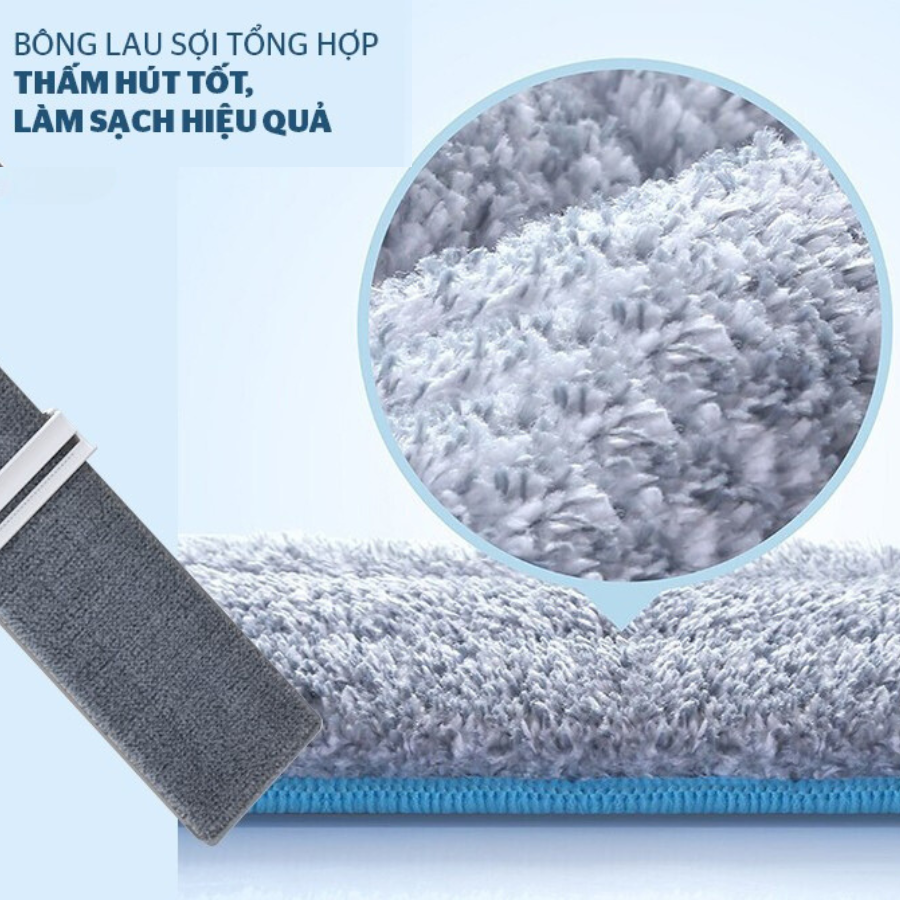 ĐẶC ĐIỂM NỔI BẬT: Chất liệu cao cấp, an toàn cho sức khỏe Cán bằng inox 201 có tay cầm bọc nhựa PP chắc chắn Bông lau bằng sợi Microfiber thấm hút nước tốt Thiết