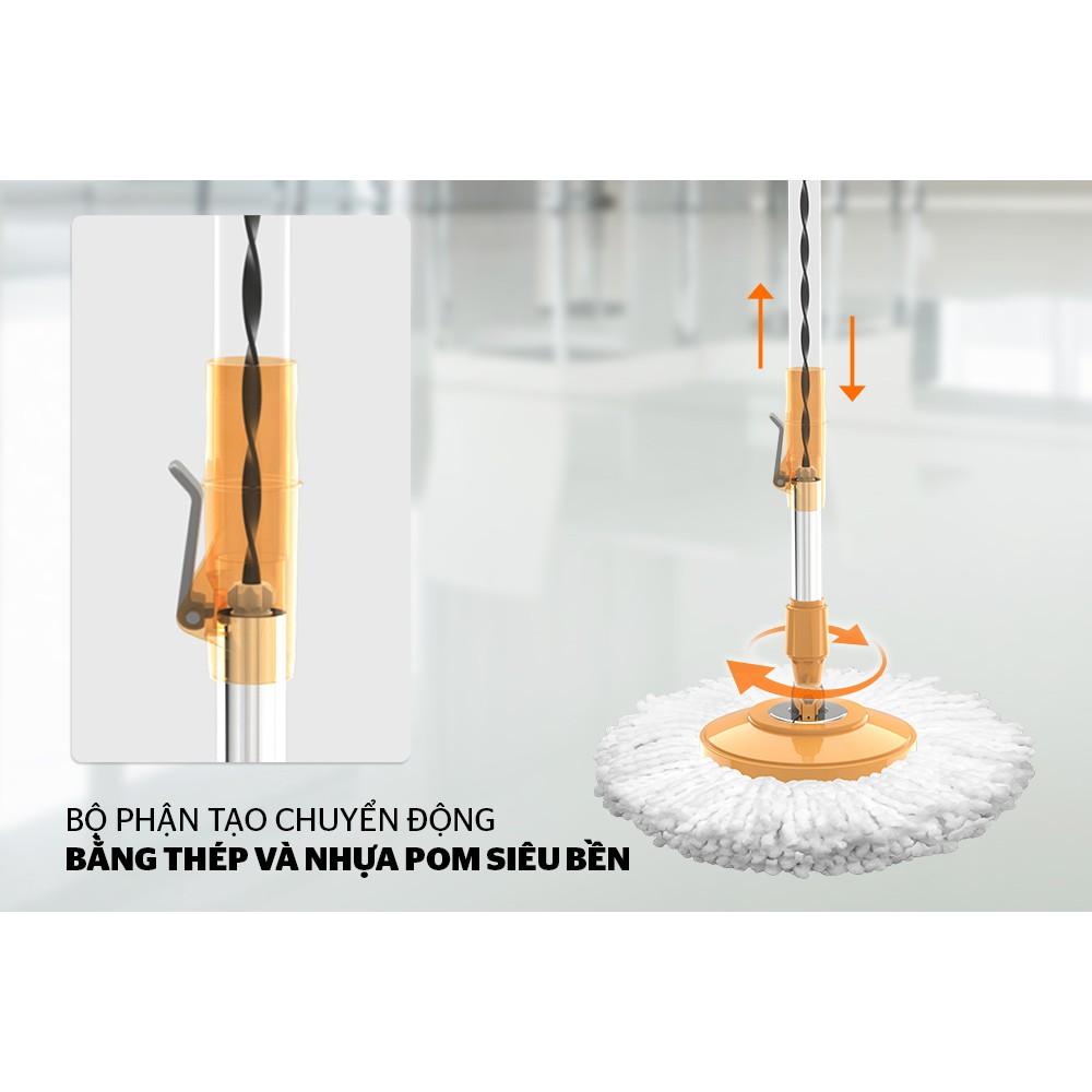 Cây Lau Nhà Tự Vắt Thông Minh Đa Năng VinBuy Chất Liệu Cao Cấp Tặng Kèm 2 Miếng Lau Chổi lau nhà vắt khô nước đến 90-95%, vắt nước nhẹ nhàng khi có con