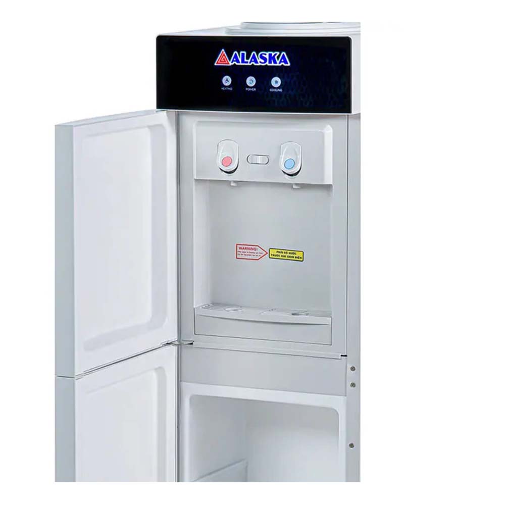 Máy nước uống nóng lạnh Alaska R-72C có ngăn lạnh Máy nước uống nóng lạnh Alaska R-72C được thiết kế dáng đứng giống một chiếc tủ lạnh mini, bên dưới có ngăn lạnh mini tiện dụng