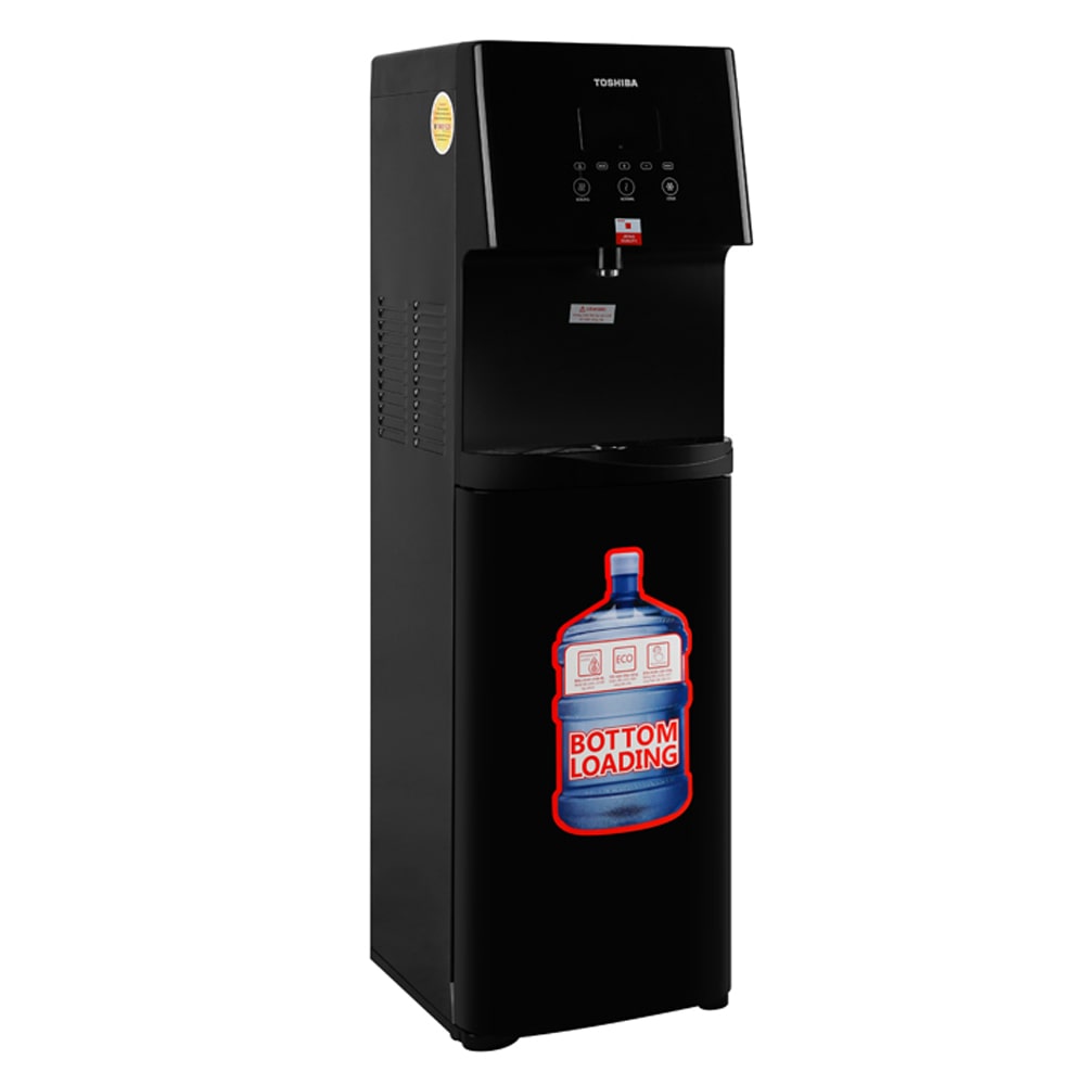 Kiểu dáng cây nước nóng lạnh Toshiba hiện đại, màu đen thanh lịch, kết cấu chắc chắn, tạo điểm nhấn cho không gian phòng khách, phòng làm việc, phòng bếp gia đình, công ty Nhiệt độ làm