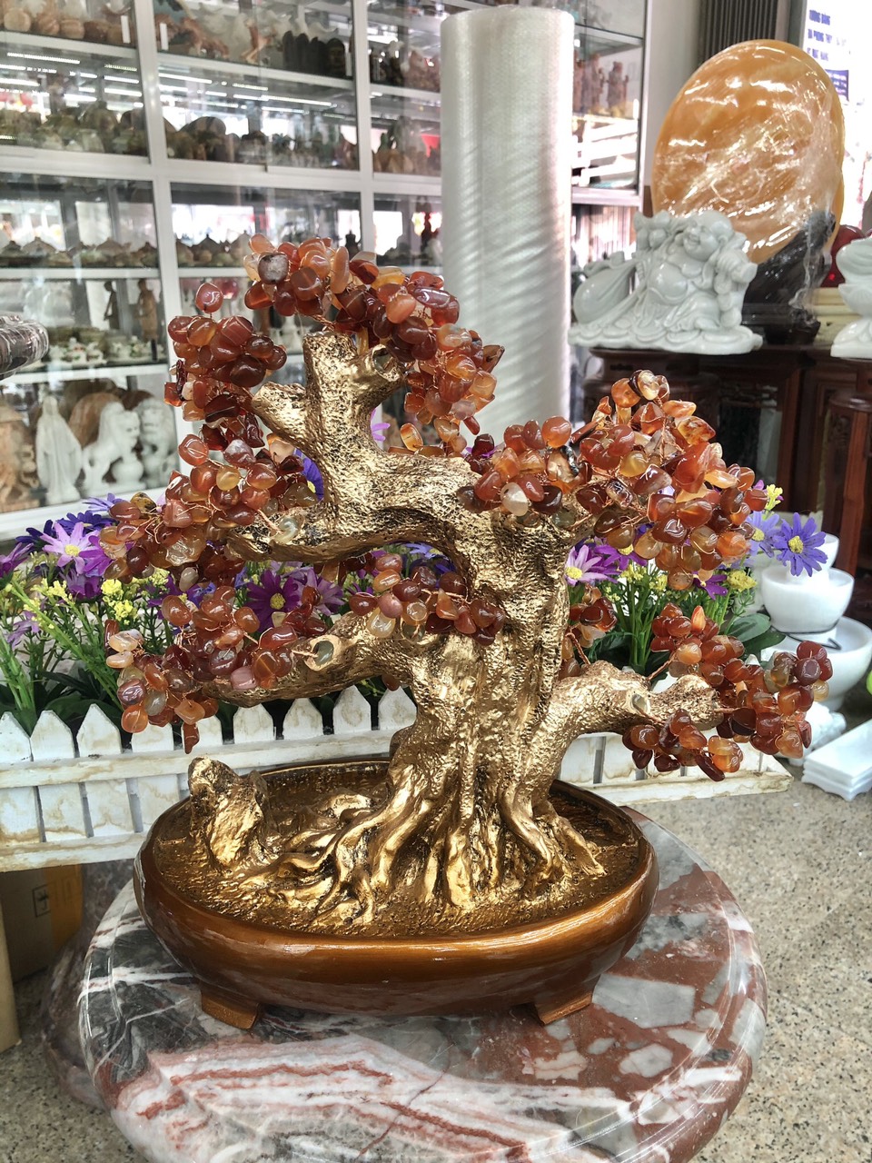 ✨Cây Tài Lộc bonsai phong thủy đá mã não đỏ - Cao 40 cm