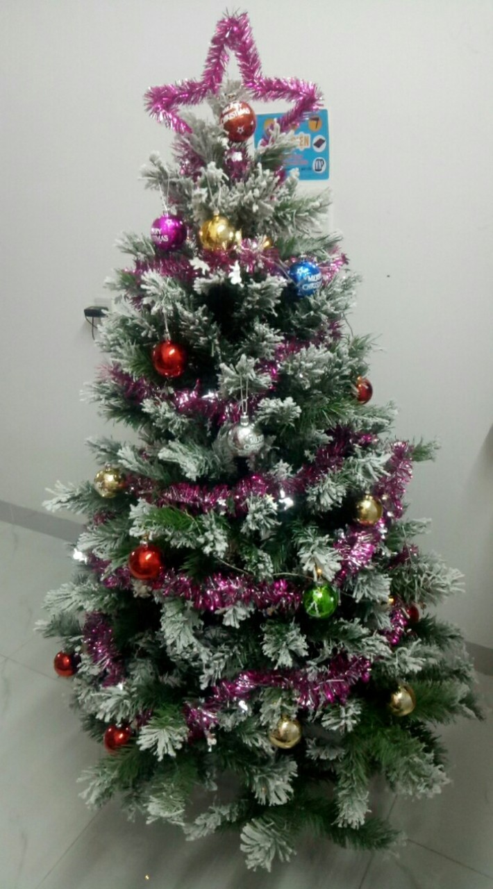 Trang trí cây thông noel 3 loại lá phủ tuyết cao 1m5