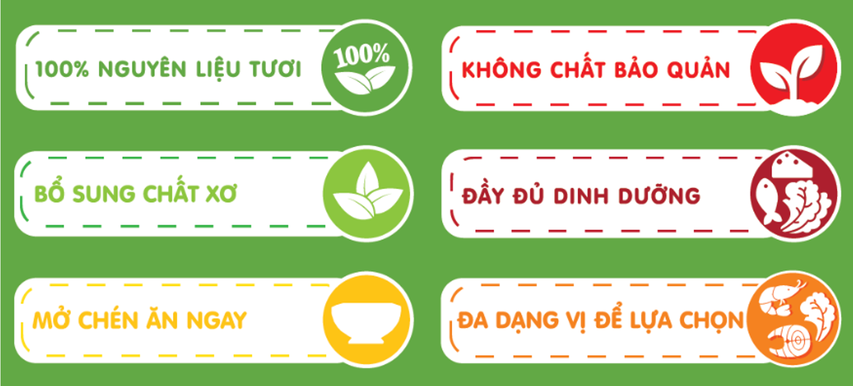 - Không chất bảo quản nhờ bao bì đa lớp chuyên dụng kết hợp Công nghệ Nhật Bản nấu chín trực tiếp nguyên liệu trong bao bì.