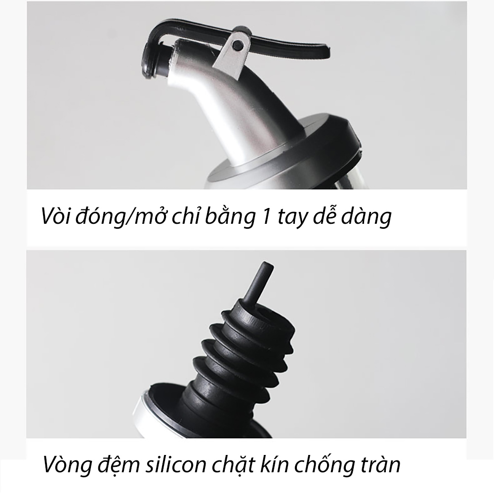 ✨Chai rót dầu ăn, nước tương thủy tinh bọc Inox 304 cao cấp 300ml bằng thủy tinh chai hũ lọ gia vị dụng cụ nhà bếp tiện ích VANDO