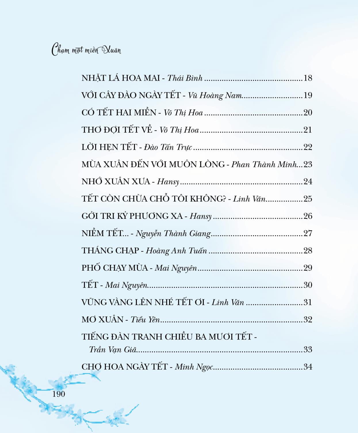Cuộc thi thơ Lục bát Tết, lần đầu tiên do Saigon Books tổ chức, đặc biệt đáng nhớ vì diễn ra vào những ngày tháng Chạp, giáp Tết Đinh Dậu (2017). Khi những dòng người ngược xuôi, náo nhiệt trở lại quê nhà vui Tết thì Lục bát Tết cũng lần lượt đổ về hộp thư điện tử của chúng tôi. Lục bát, đương nhiên là phải có quy định niêm luật, nhưng vượt lên những niêm luật mang tính kỹ thuật, đó chính là QUY LUẬT TÌNH CẢM, là nhịp điệu thương nhớ gieo mầm, nảy nở theo mùa màng. Chọn 158 tác phẩm của 50 tác giả vào Chung khảo cuộc thi Lục bát Tết để in trong tập sách này, chúng tôi xem đây như là món quà nhỏ gửi đến những bạn đọc, bạn viết yêu thơ. Và, cao hơn là yêu quê hương mình còn lận đận một nắng hai sương, còn trĩu nặng toan lo trên những bờ vai gầy guộc. Chạm một miền Xuân là chạm vào một miền cảm xúc mênh mang của bao người.