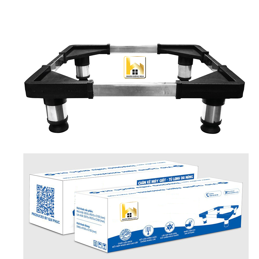 Chân đỡ máy giặt, tủ lạnh,chân Kệ Tủ Lạnh, Máy Giặt, Máy Lọc Nước Đa Năng,Khung Inox Đế Nhựa Chống Rung Chất liệu: Inox + Nhựa PP Kích thước: + Nhỏ nhất: 510 x 510 x 150
