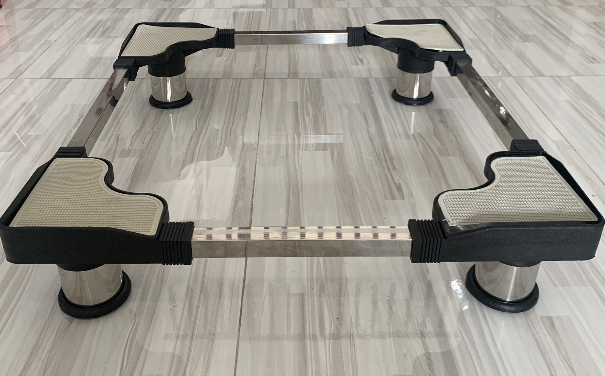 Chất liệu inox cứng cáp, chắc chắn, phù hợp với máy giặt 6 - 9 kg và tủ lạnh 90 - 270 lít