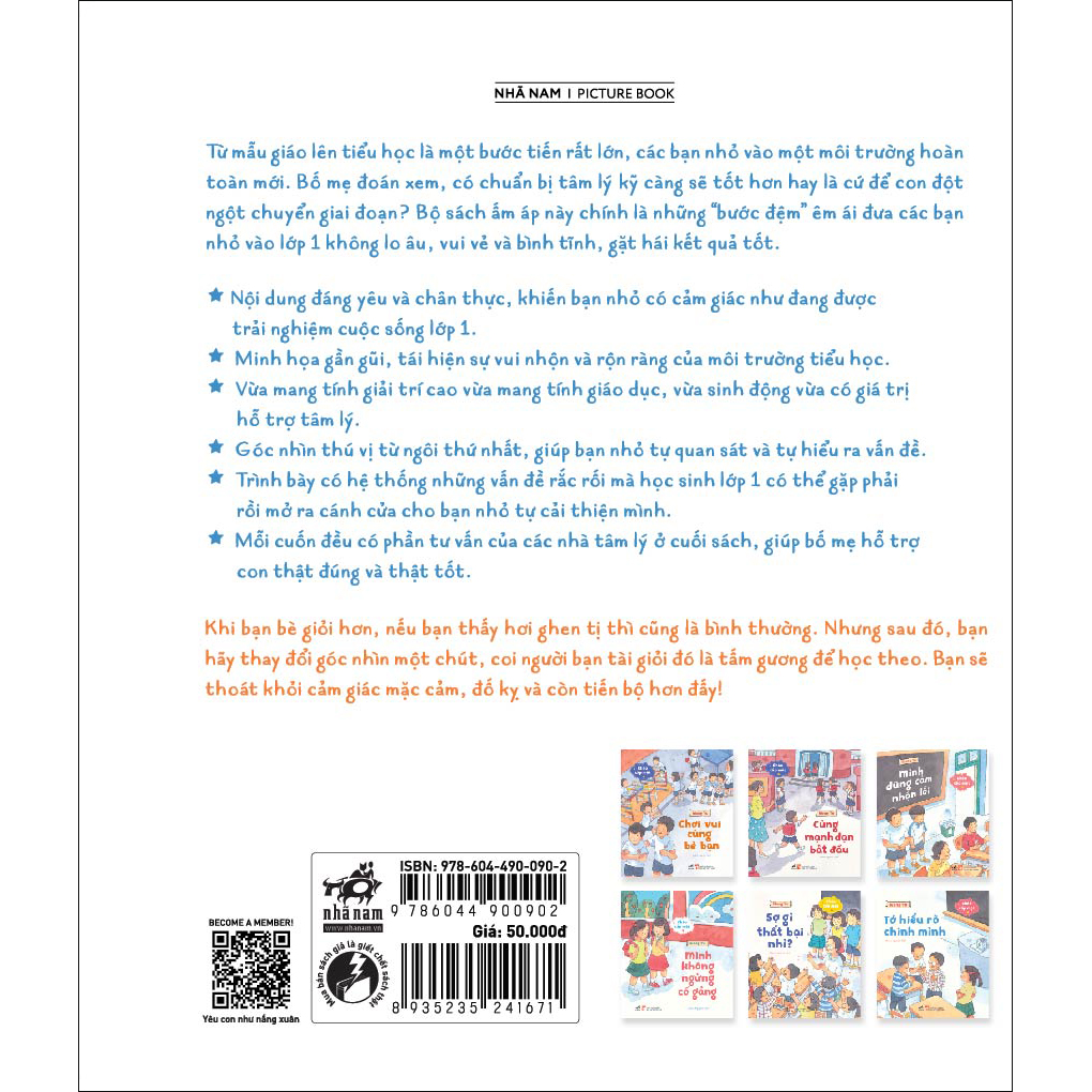 Từ mẫu giáo lên tiểu học là một bước tiến rất lớn, các bạn nhỏ vào một môi trường hoàn toàn mới. Bố mẹ đoán xem, có chuẩn bị tâm lý kỹ càng sẽ tốt hơn hay là cứ để con đột ngột chuyển giai đoạn? Bộ sách ấm áp này chính là những “tấm nệm” êm ái đưa các bạn nhỏ vào lớp 1 không lo âu, vui vẻ và bình tĩnh, gặt hái kết quả tốt.