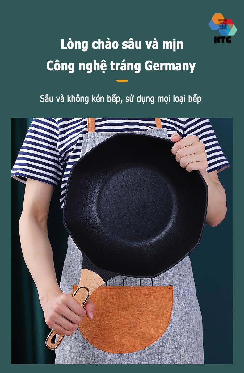 Lòng chảo sâu lên đến 10cm, với công nghệ tráng chống dính Germany - Đức, giúp sử dụng chảo khi chế biến có thể lật úp thoải mái mà không sợ bị văng thực phẩm ra bên ngoài.
