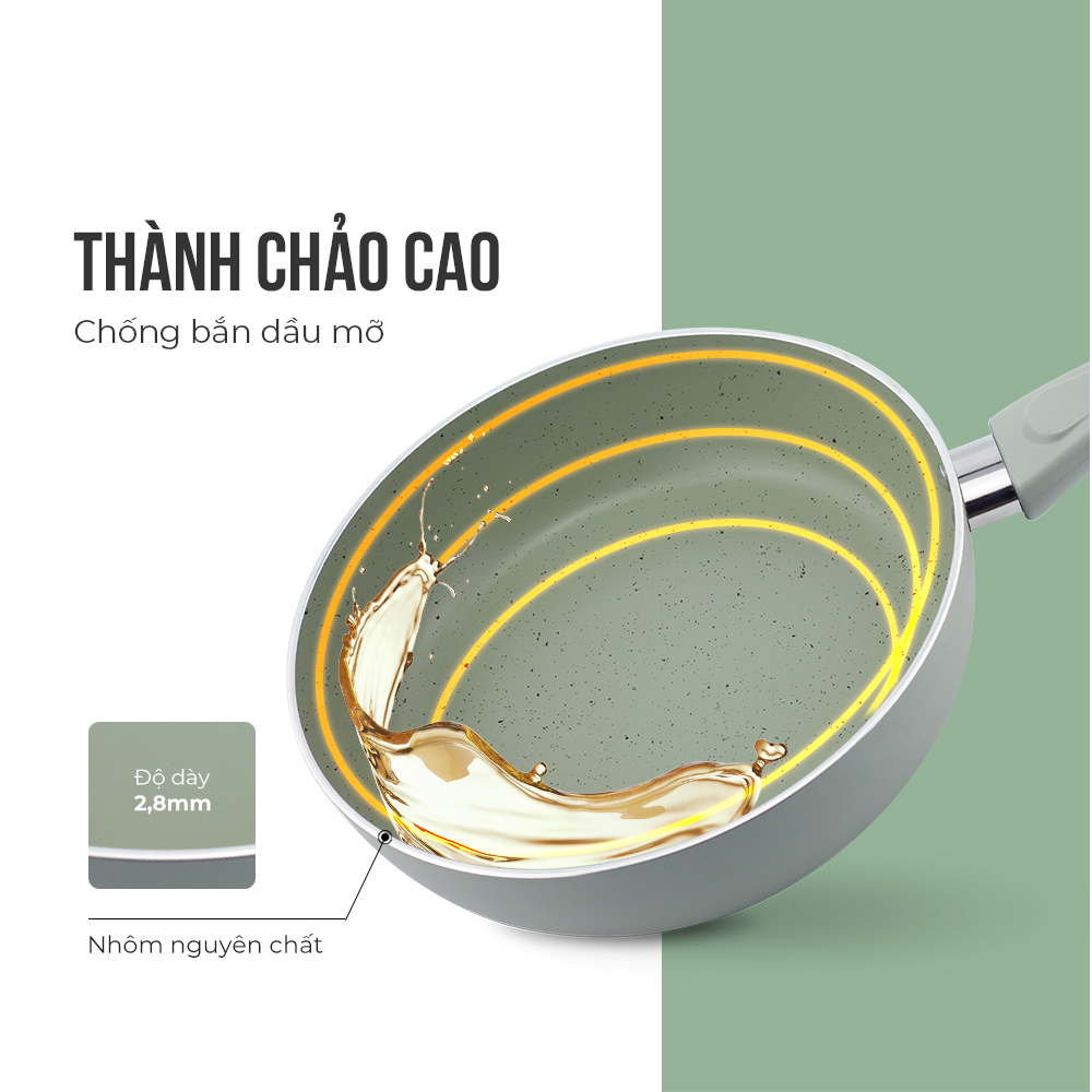️ Kích thước chảo: - Chảo 16cm: 16X5cm - Chảo 20cm: 20x5,5cm - Chảo 24cm: 24x6cm - Chảo 26cm: 26x6,5cm - Chảo 28cm: 28x7cm Đặc điểm nổi bật - Công nghệ chống dính Nano Titanium