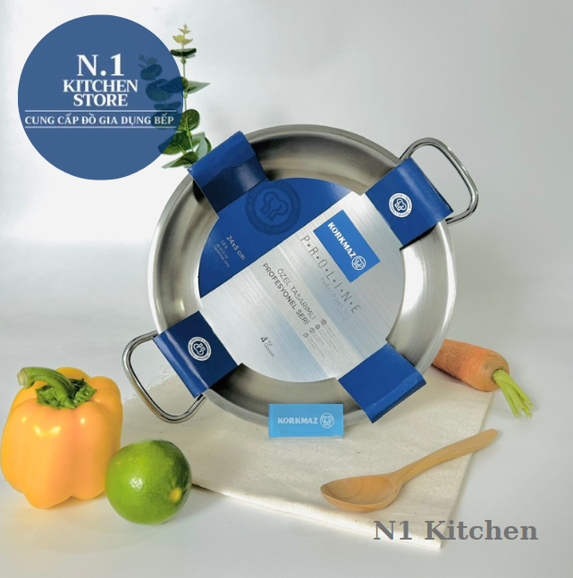 Chảo inox cao cấp 2 quai Korkmax Proline 24cm - A1192 là dòng sản phẩm inox cao cấp 18/10 của thương hiệu Korkmaz, được sản xuất 100% tại Thổ Nhĩ Kỳ với dòng chữ Made in Turkey dập dưới đáy mỗi sản phẩm.