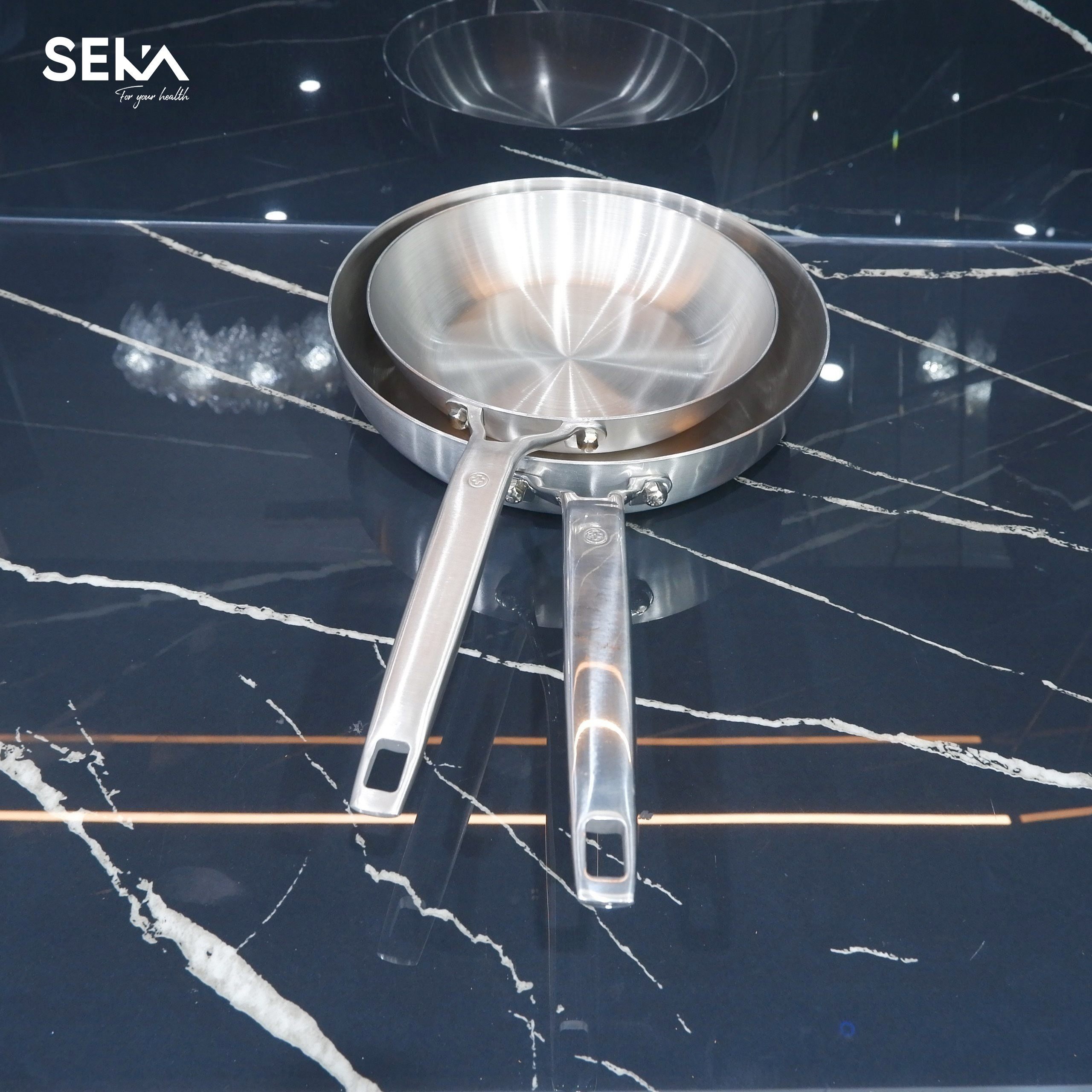 + Lớp ngoài cùng tiếp xúc với mặt bếp là inox 304 nguyên tấm cho hiệu suất bắt từ cao nhất. Nồi chảo inox SEKA dùng trên mọi loại bếp kể cả các bếp từ khó tính, bếp điện, bếp hồng ngoại, bếp gas,….