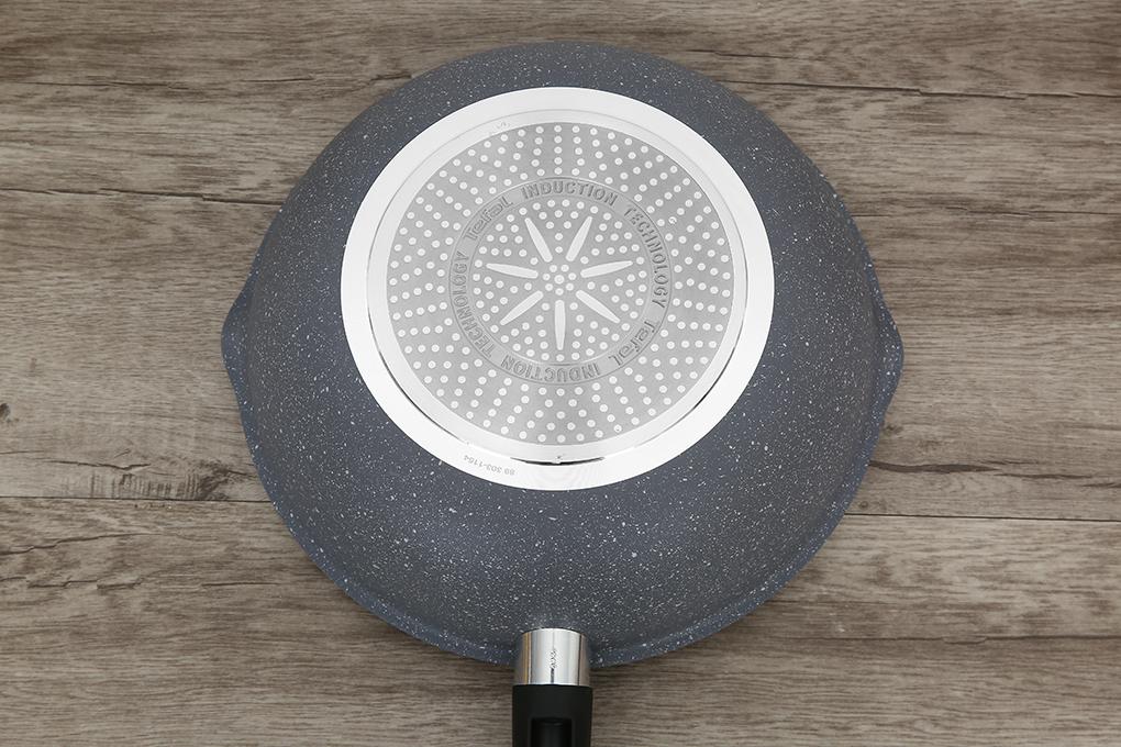 Bề mặt lòng chảo được phủ lớp chống dính vân đá Titanium Non-Stick cho độ bền lên đến 32.000 lần chà nhám