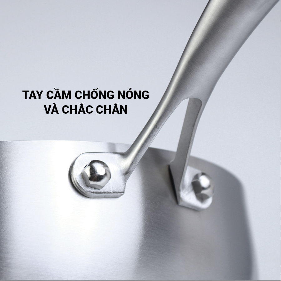 Cấu tạo 3 lớp liền thân: Lớp trong cùng inox 304, nhôm và 430