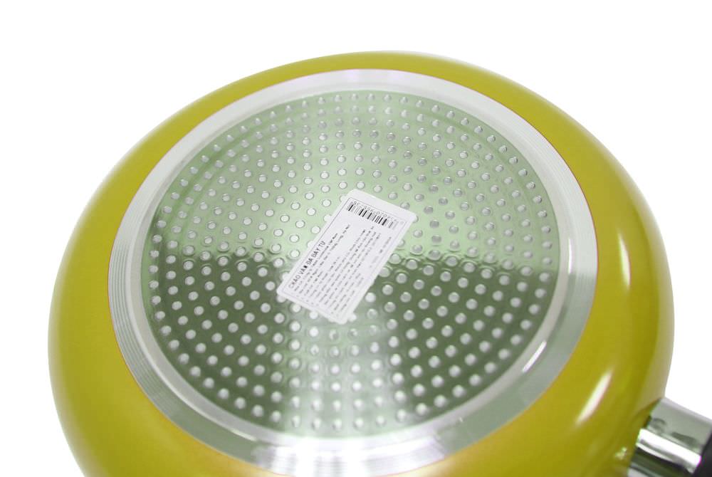 Làm bằng thép từ tính kết hợp lõi nhôm dày 6mm Lòng chảo được phủ lớp chống dính cao cấp Chảo được thiết kế kết cấu chống trơn trượt dưới đáy, rất an toàn khi