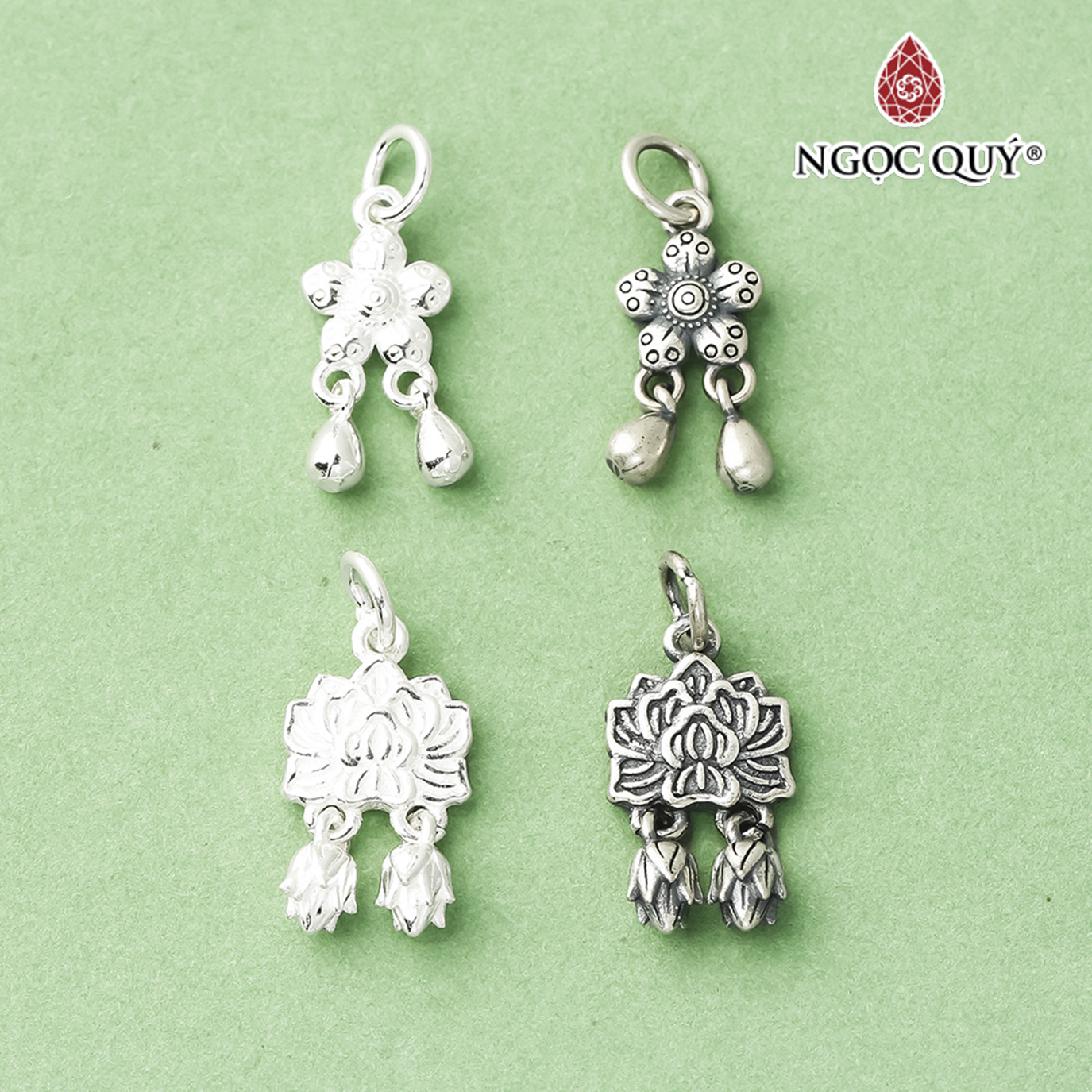 ✨Charm bạc hình hoa sen họa tiết hoa văn treo - Ngọc Quý Gemstones