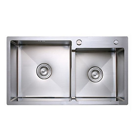 Inox 304 Kích thước chậu: 820x450mmx230mm Kích thước 2 hố: 370x350x230mm KT khoét đá: 790x425mm Kích thước 2 hố: 750mm