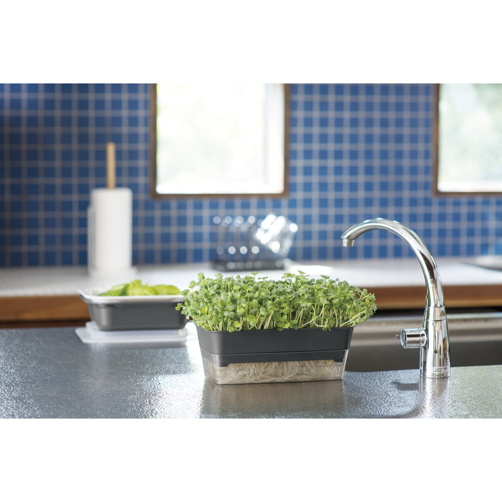 Diện tích khay trồng nhỏ gọn. Với thiết kế này cho phép bạn cso thể trồng rau mầm ở bất cứ đâu, nhất là những nơi nhỏ như phòng bếp, và có thể di chuyển chậu để phù hợp với điều kiện ánh sáng.