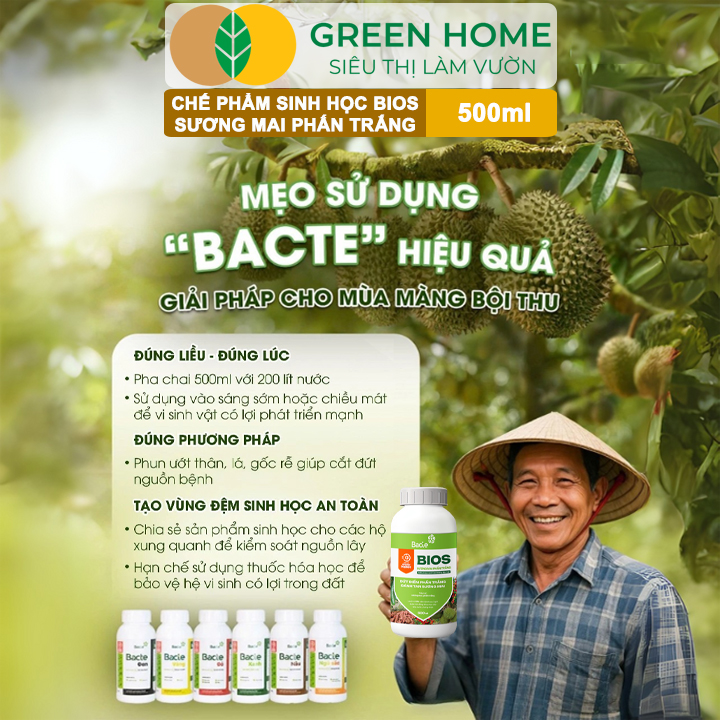 ✨Chế Phẩm Sinh Học Bacte Bios Sương Mai Phấn Trắng, Green Home, Chai 500ml, Từ Thảo Mộc, Hiệu Lực Nhanh Mạnh