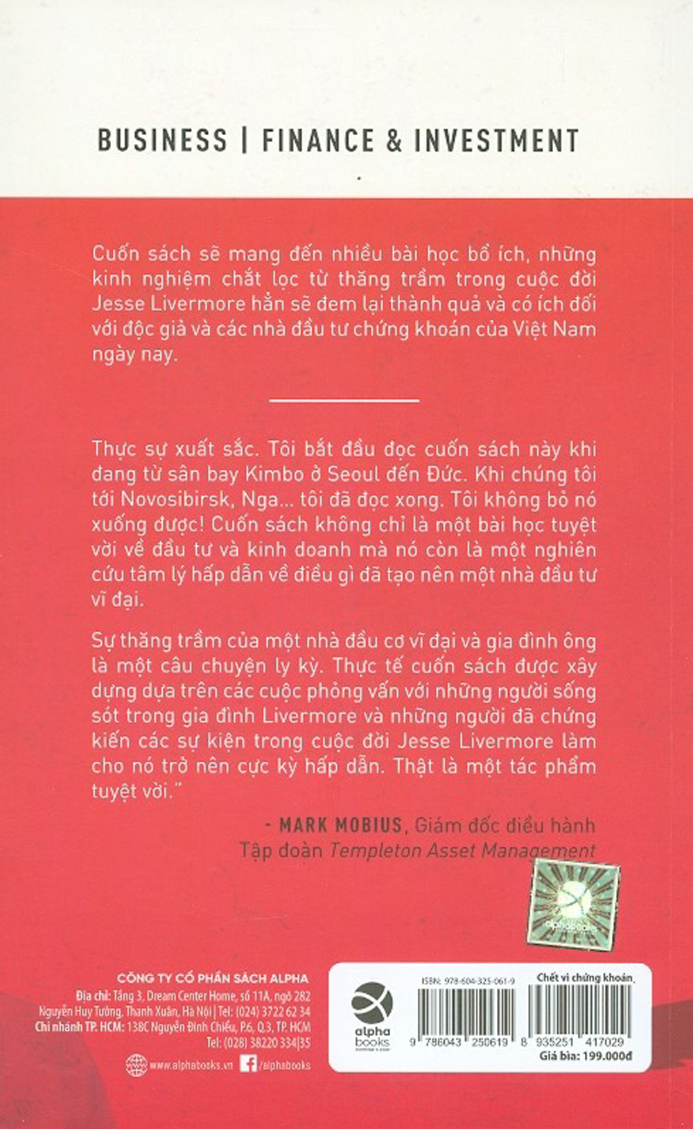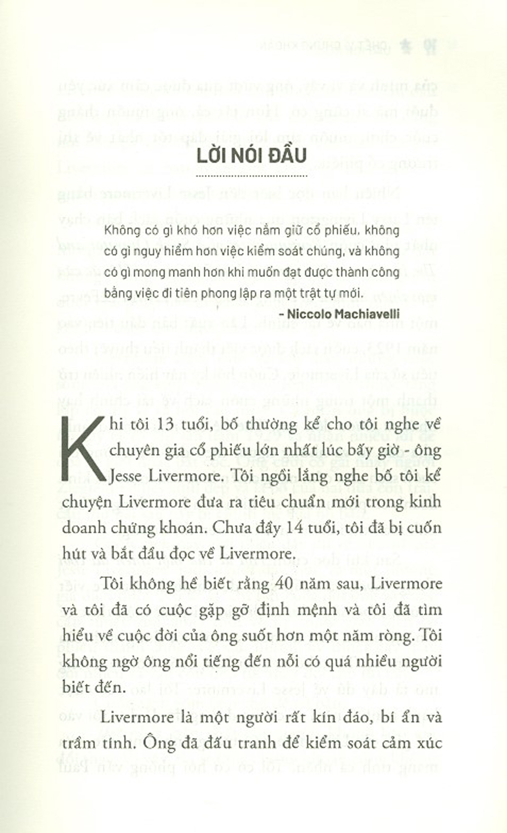 Cuốn sách CHẾT VÌ CHỨNG KHOÁN: JESS LIVERMORE - Câu chuyện về nhà đầu tư chứng khoán vĩ đại nhất mà các bạn đang cầm trong tay nằm trong loạt sách này, là về cuộc đời của Jesse Livermore, một trong những nhà kinh doanh chứng khoán thành công nhất thế giới, nhưng chính ông cũng phải đón nhận một kết cục hết sức bi thảm: gia đình tan vỡ, tài chính phá sản và tự sát trong tuyệt vọng. Cuốn sách sẽ đem lại rất nhiều bài học bổ ích, những kinh nghiệm chắt lọc từ thăng trầm trong cuộc đời ông hẳn sẽ có giá trị và hữu ích đối với độc giả và các nhà đầu tư chứng khoán của Việt Nam hôm nay.