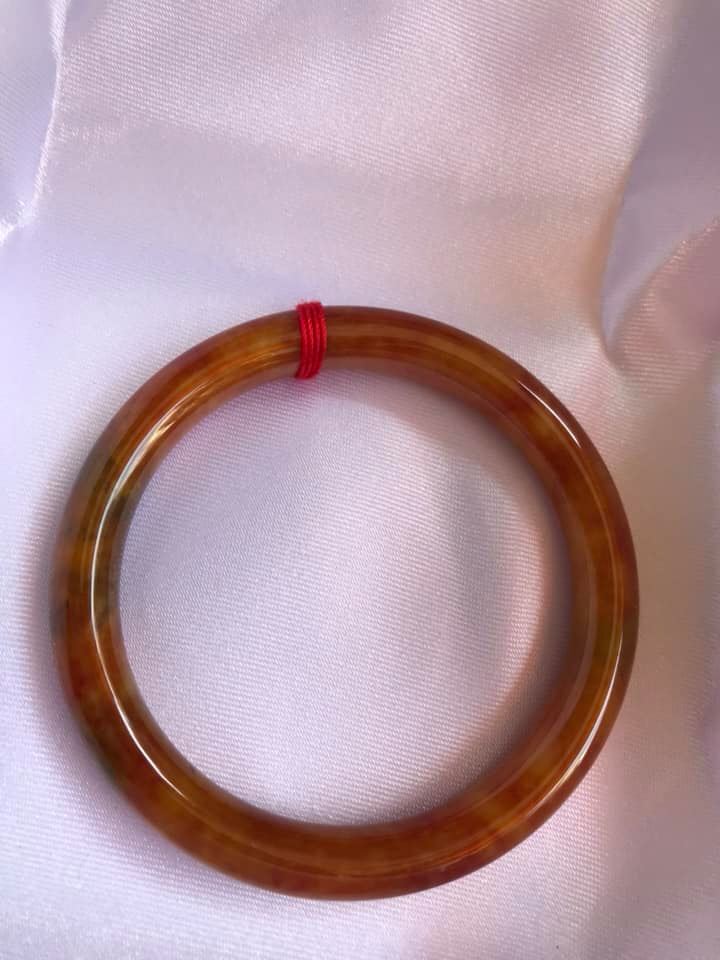 💕💦💕Vòng cẩm thạch Tứ Quý đẹp 51mm xdầy 7,5mm Màu Cam Bông Xíu Xanh Nhẹ bóng đẹp lắm 50kg-56kg480k