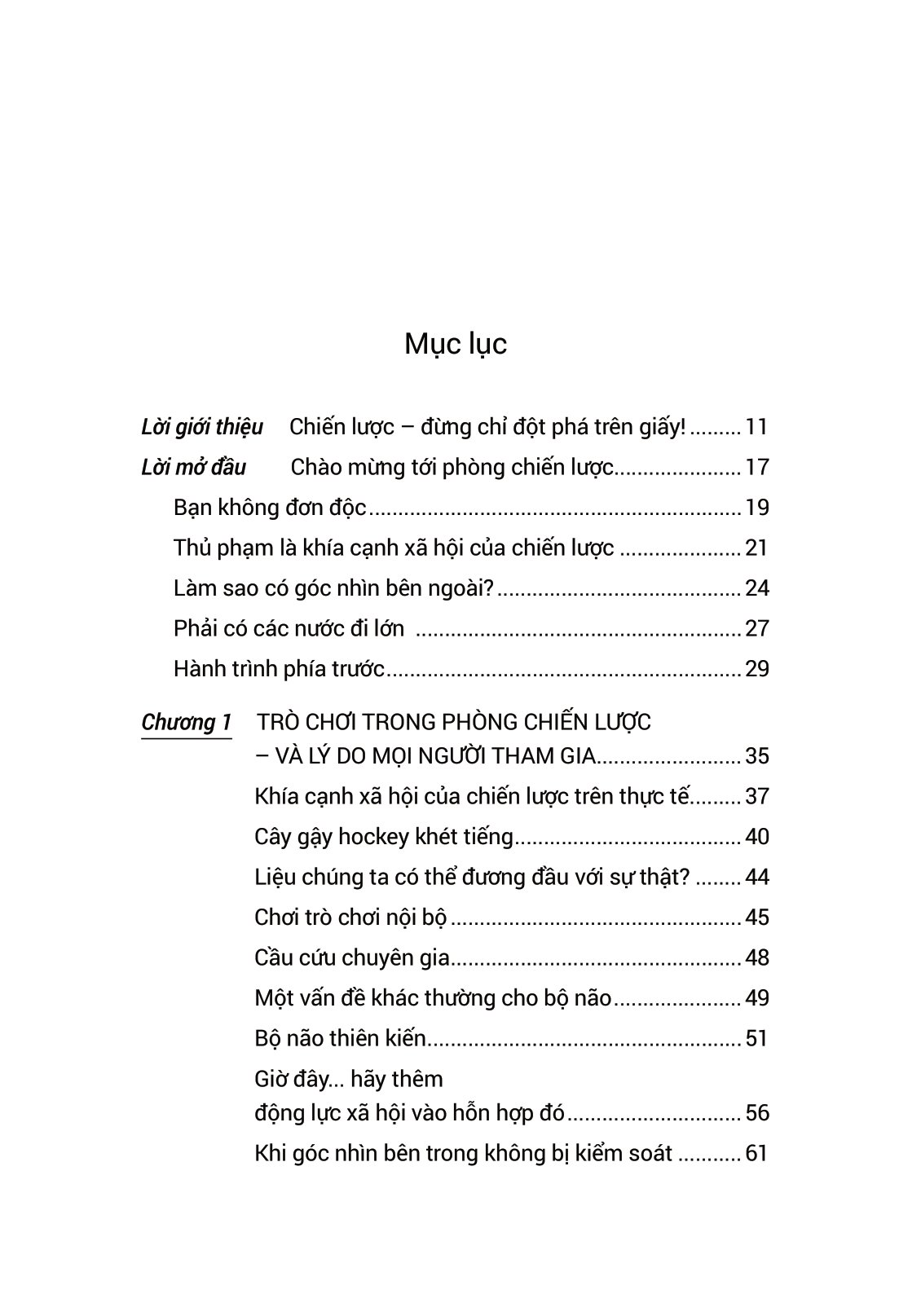 Cuốn sách Strategy Beyond the Hockey Stick: People, Probabilities, and Big Moves to Beat the Odds này có rất nhiều lời khuyên về cách lập chiến lược. Chẳng hạn, chiến lược không nên là kết quả của một cuộc họp hay một quy trình định kỳ hằng năm, mà nó nên là một hành trình liên tục, được theo dõi và điều chỉnh thường xuyên. Hoặc, chiến lược cũng không nên là một bản kế hoạch duy nhất mà mọi người cần đồng thuận ngay lập tức để kết thúc cuộc họp sớm, ngược lại, chúng ta cần có các ý kiến và câu hỏi khơi mào cho những lựa chọn khác.