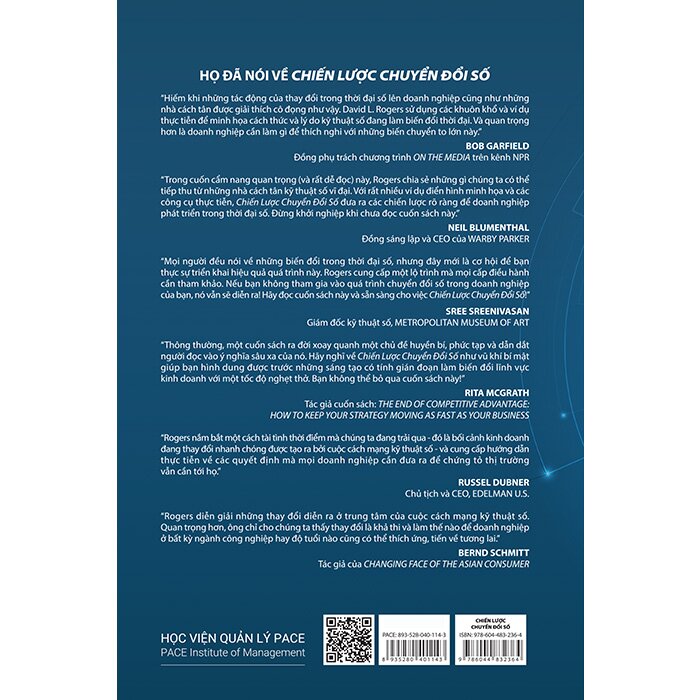 "Mọi người đều nói về những biến đổi trong thời đại số, nhưng đây mới là cơ hội để bạn thực sự triển khai hiệu quả quá trình này. Rogers cung cấp một lộ trình mà mọi cấp điều hành cần tham khảo. Nếu bạn không tham gia vào quá trình chuyển đổi trong doanh nghiệp, nó vẫn sẽ diễn ra! Hãy đọc cuốn sách này và sẵn sàng cho việc Chiến lược chuyển đổi số." - Sree Sreenivasan; Giám đốc kỹ thuật số, Metropolitan Museum of Art
