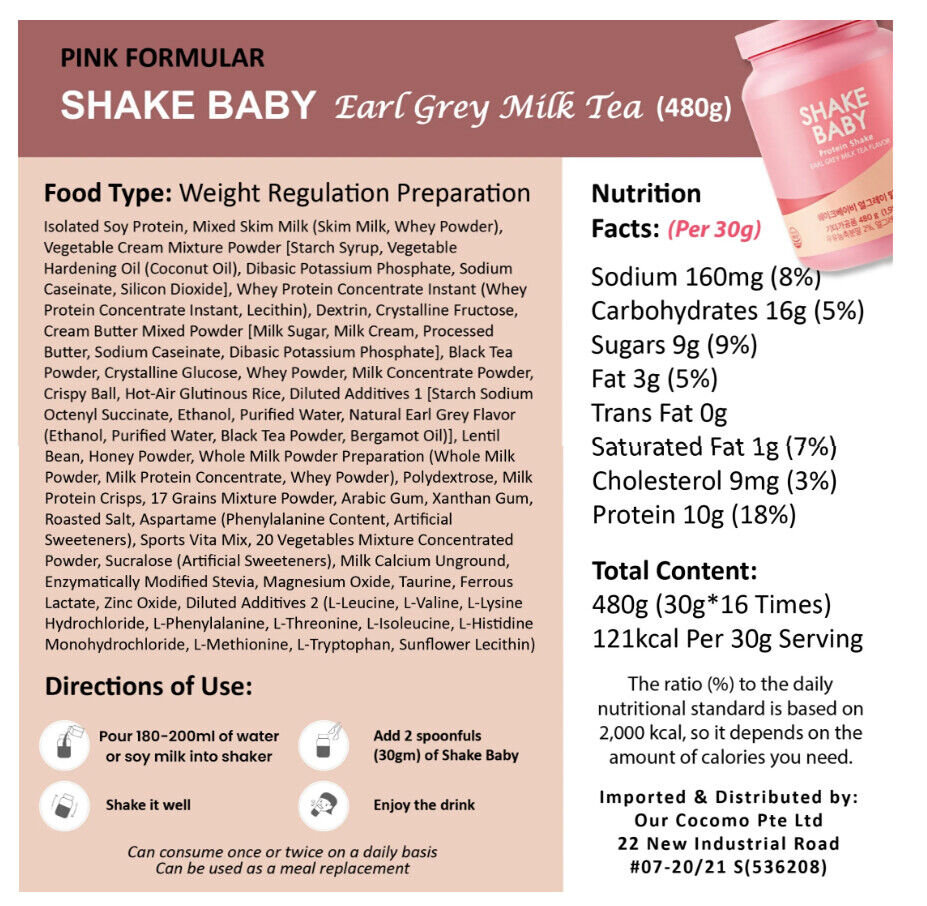 Bột Ngũ Cốc Ăn Kiêng Thay Thế Bữa Ăn Diet Formular Protein Shake Baby Vị Trà Sữa Bá Tước (Earl Grey Milk Tea Flavor) Dung tích: Dạng hộp 750g Thương hiệu: Shake Baby Xuất xứ: Hàn Quốc Bột ngũ cốc protein Shake Baby là sản phẩm mang tới công thức hiệu quả trong việc kiểm soát cân nặng, hay đặc biệt còn có thể cung cấp, bổ sung năng lượng như một bữa ăn mà vẫn giúp cơ thể có được lượng dinh dưỡng cần thiết. Bột ngũ cốc protein Shake Baby là dòng sản phẩm được yêu thích và tiêu thụ nhiều nhất Best & Steady tại "xứ sở Kim Chi". ️ ĐẶC ĐIỂM NỔI BẬT CỦA SHAKE BABY 750G