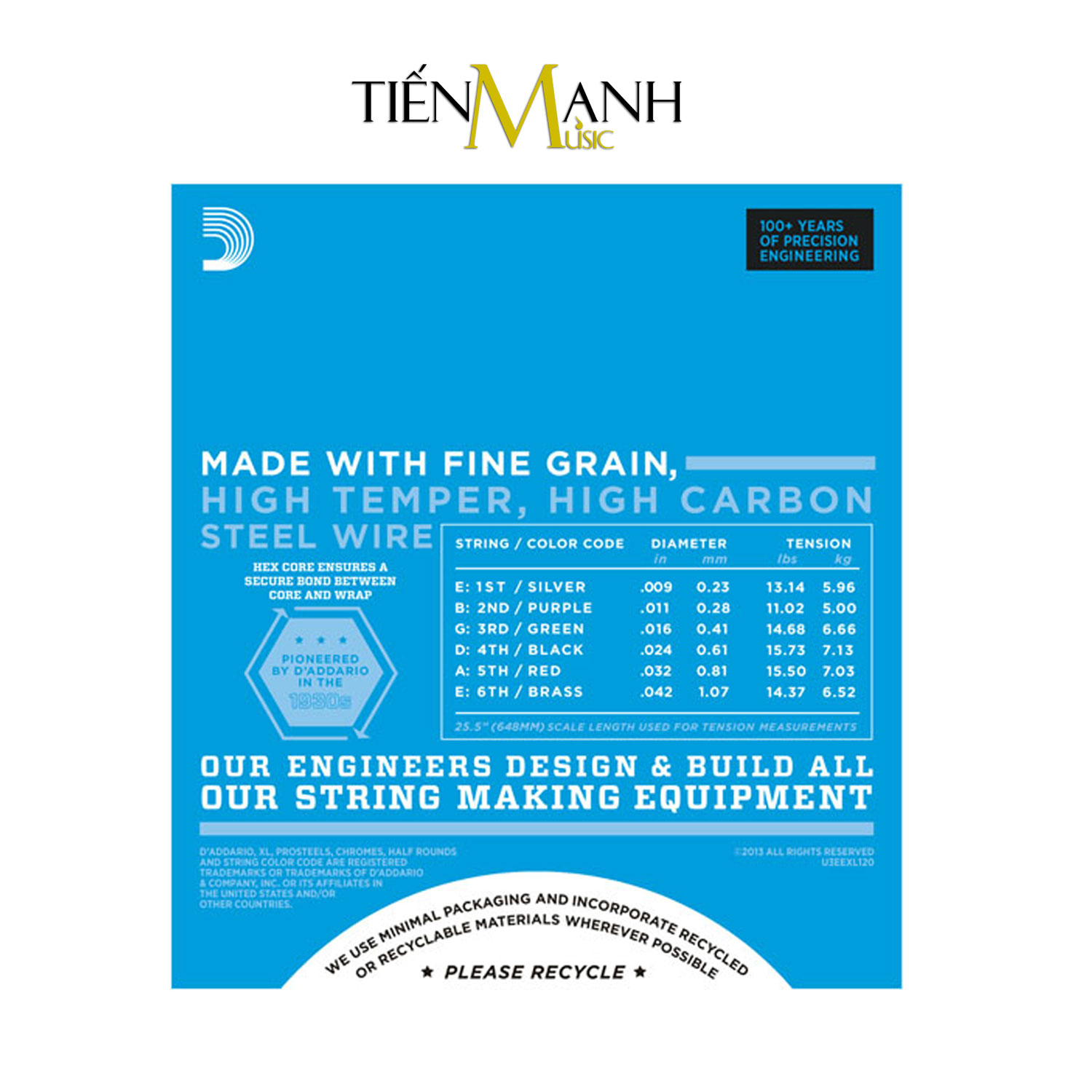 - Dây Đàn Guitar Acoustic D'Addario EXL120 được làm từ chất liệu dây cao cấp, có khả năng chống ăn mòn và chịu lực tốt, trải qua quá trình chế tác bằng công nghệ hiện đại cho độ bền cao.