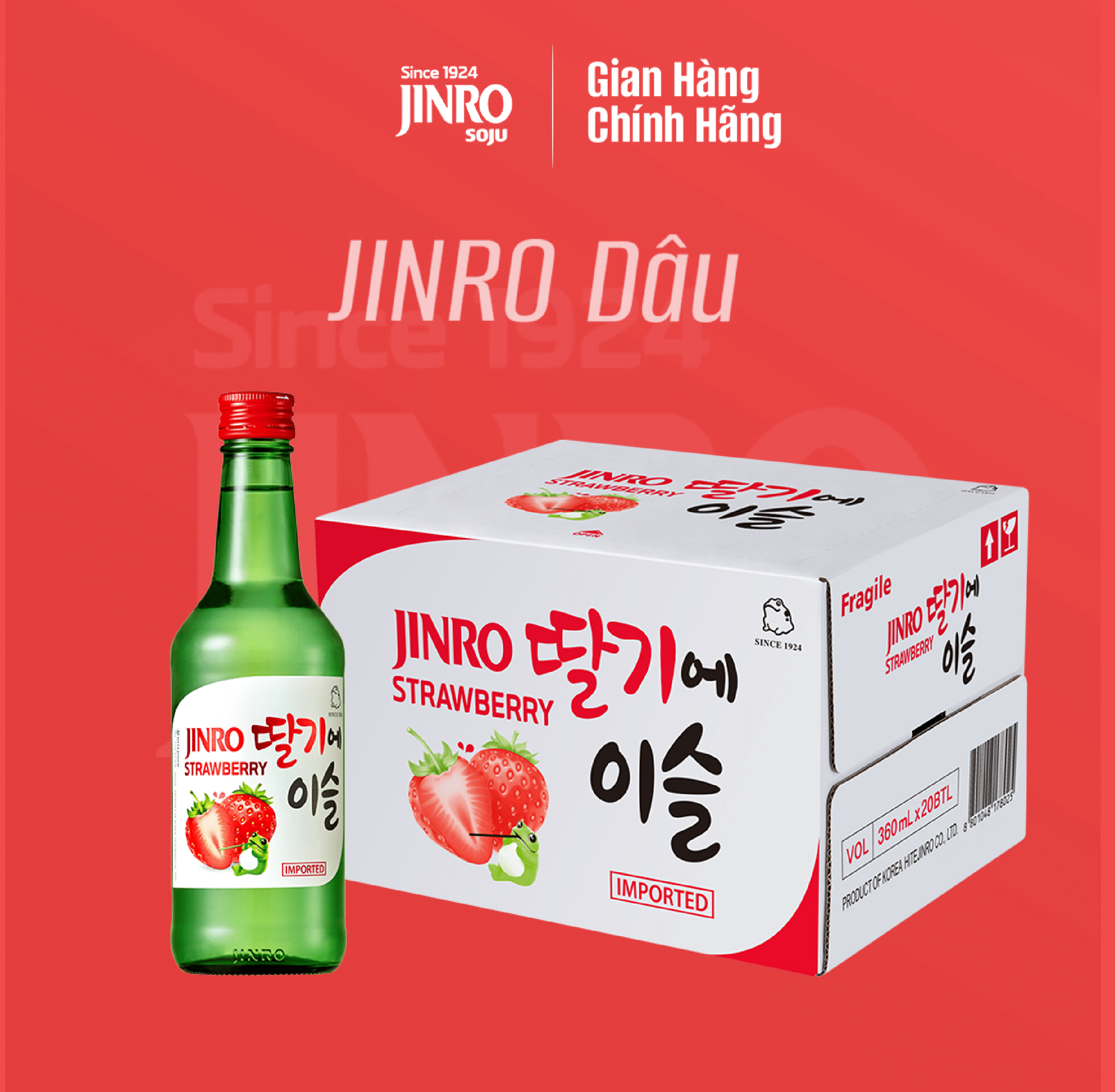 ✨[CHÍNH HÃNG] Soju Hàn Quốc JINRO VỊ DÂU 360ml - Thùng 20 chai