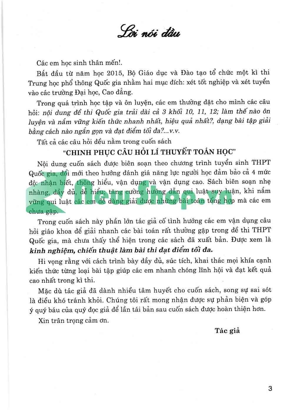 Chinh Phục Câu Hỏi Lý Thuyết Toán Học Thi THPT Quốc Gia, giúp các em học sinh có thêm tài liệu hay sử dụng ôn tập thi tốt nghiệp môn toán đạt điểm cao, các em chinh phục luyện giải đề thi môn toán học.