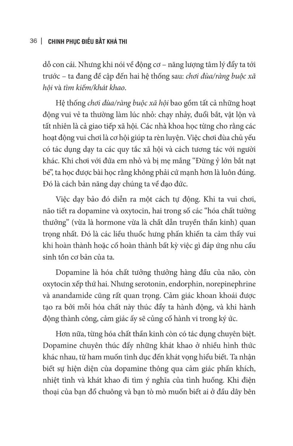 Chinh phục điều bất khá sẽ giúp bạn khám phá bộ tứ khả năng nhận thức – động lực, khả năng học hỏi, tính sáng tạo và dòng chảy. Rồi ta sẽ hiểu tại sao các kỹ năng này lại thiết yếu đến thế đối với hiệu suất đỉnh cao. Ta sẽ thấy cách chúng hoạt động trong bộ não và trong cơ thể. Và ta sẽ dùng hiểu biết này để tăng tốc trên con đường chinh phục điều bất khả.