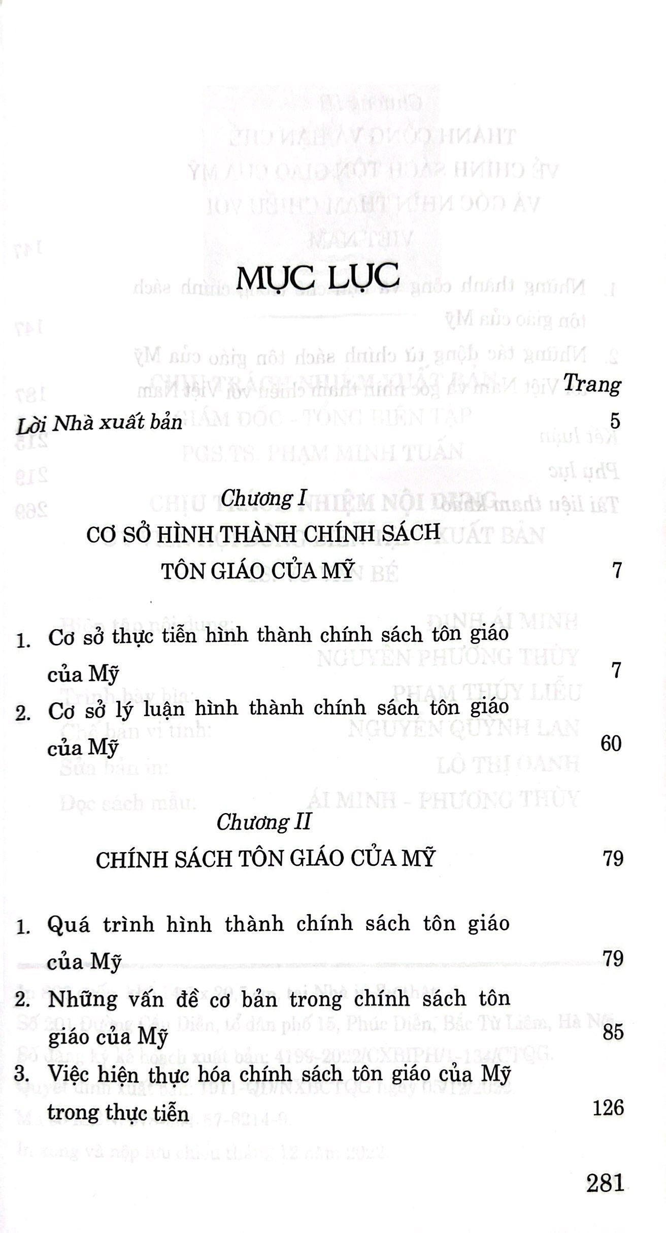 Chính sách tôn giáo của M.ỹ và góc nhìn tham chiếu với Việt Nam của Tiến sĩ Phạm Thanh Hằng. Đây là công trình chuyên khảo được nghiên cứu rất công phu và trình bày một cách khoa học, rõ ràng những vấn đề cơ bản của chính sách tôn giáo của Mỹ. Đặc biệt, tác giả đem đến một “góc nhìn” mới, chỉ ra những thành công và hạn chế trong chính sách tôn giáo của Mỹ và phân tích những tác động đối với Việt Nam; làm sâu sắc hơn quan điểm về công tác tôn giáo của Dảng C.ộ s.ản Việt Nam được đề ra mới nhất trong Văn kiện Đại hội XIII."