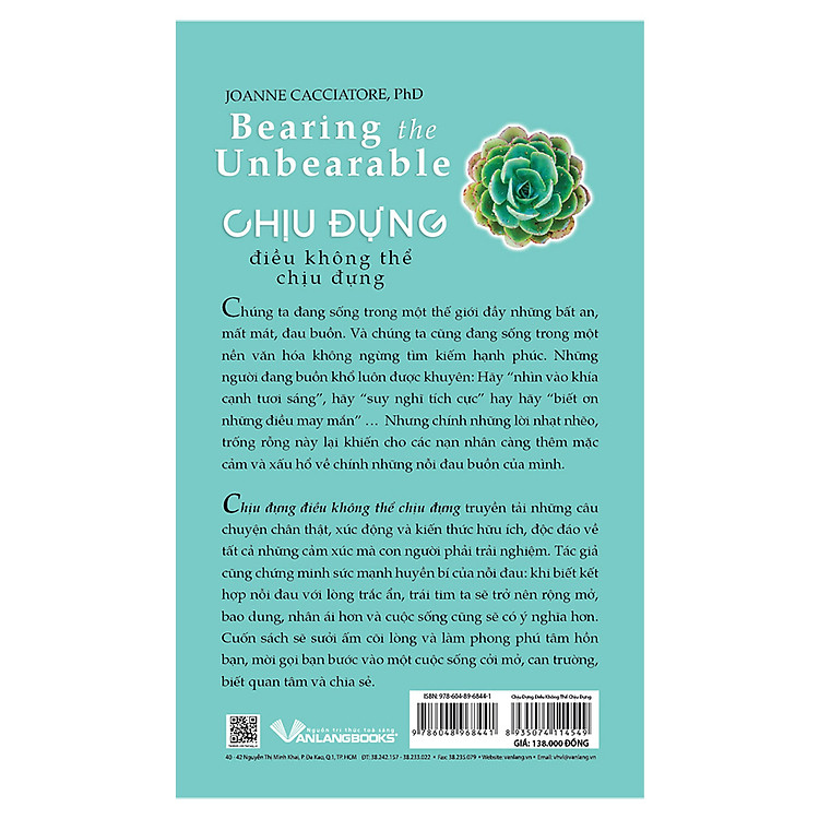 Chúng ta đang sống trong một thế giới đầy những bất an, mất mát, đau buồn. Và chúng ta cũng đang sống trong một nền văn hóa không ngừng tìm kiếm hạnh phúc. Những người đang buồn khổ luôn được khuyên: Hãy “nhìn vào khía cạnh tươi sáng”, hãy “suy nghĩ tích cực” hay hãy “biết ơn những điều may mắn”… Nhưng chính những lời nhạt nhẽo, trống rỗng này lại khiến cho các nạn nhân càng thêm mặc cảm và xấu hổ về chính những nỗi đau buồn của mình. Chịu đựng điều không thể chịu đựng truyền tải những câu chuyện chân thật, xúc động và kiến thức hữu ích, độc đáo về tất cả những cảm xúc mà con người phải trải nghiệm. Tác giả cũng chứng minh sức mạnh huyền bí của nỗi đau: khi biết kết hợp nỗi đau với lòng trắc ẩn, trái tim ta sẽ trở nên rộng mở, bao dung, nhân ái hơn và cuộc sống cũng sẽ có ý nghĩa hơn. Cuốn sách sẽ sưởi ấm cõi lòng và làm phong phú tâm hồn bạn, mời gọi bạn bước vào một cuộc sống cởi mở, can trường, biết quan tâm và chia sẻ.