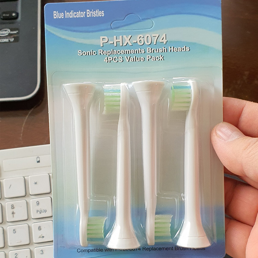 Mua tại TiktokBộ 4 đầu bàn chải đánh răng điện HX-6074 cho máy Philips Sonicare HX3, HX6, HX7, HX8, HX9, R, FlexCare +, FlexCare, HealthyWhite, HydroClean, EasyClean, DiamondClean Mô tả: Các bạn đều biết mọi đầu đánh răng khi sử dụng từ 3-6 tháng đều nên thay mới để đảm bảo vệ sinh và giữ cho máy được bền. Khi mua máy, Nhà SX chỉ trang bị 1 số đầu nhất định. Vậy cần mua thêm đầu thay thế để dự phòng và thay đổi định kỳ. Thông tin: