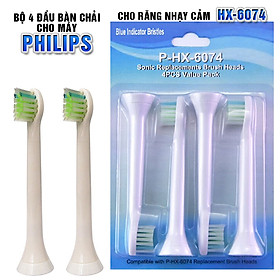 ✨Cho máy Philips Sonicare, Bộ 4 đầu bàn chải đánh răng điện HX-6074, dòng máy HX3, HX6, HX7, HX8, HX9, R, FlexCare +, FlexCare, HealthyWhite, HydroClean, EasyClean, DiamondClean-Cho răng nhạy cảm, mát xa nướu lợi