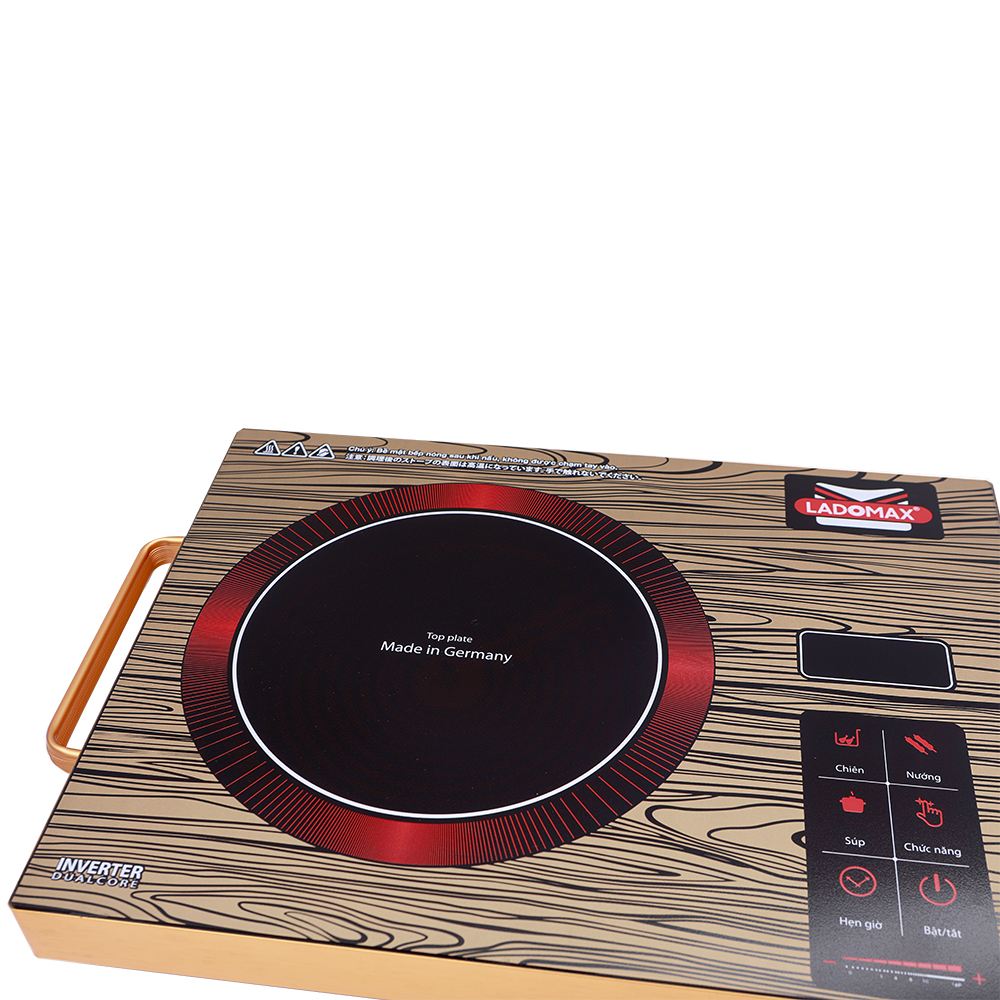 THÔNG SỐ KỸ THUẬT Tên sản phẩm: Bếp hồng ngoại 2200W Ladomax Ha-666 Inox Vân Gỗ Mặt Kính GERMANY Cao Cấp Thương hiệu: LADOMAX Mã sản phẩm: HA-666 INOX Vân Gỗ Loại sản phẩm: Bếp
