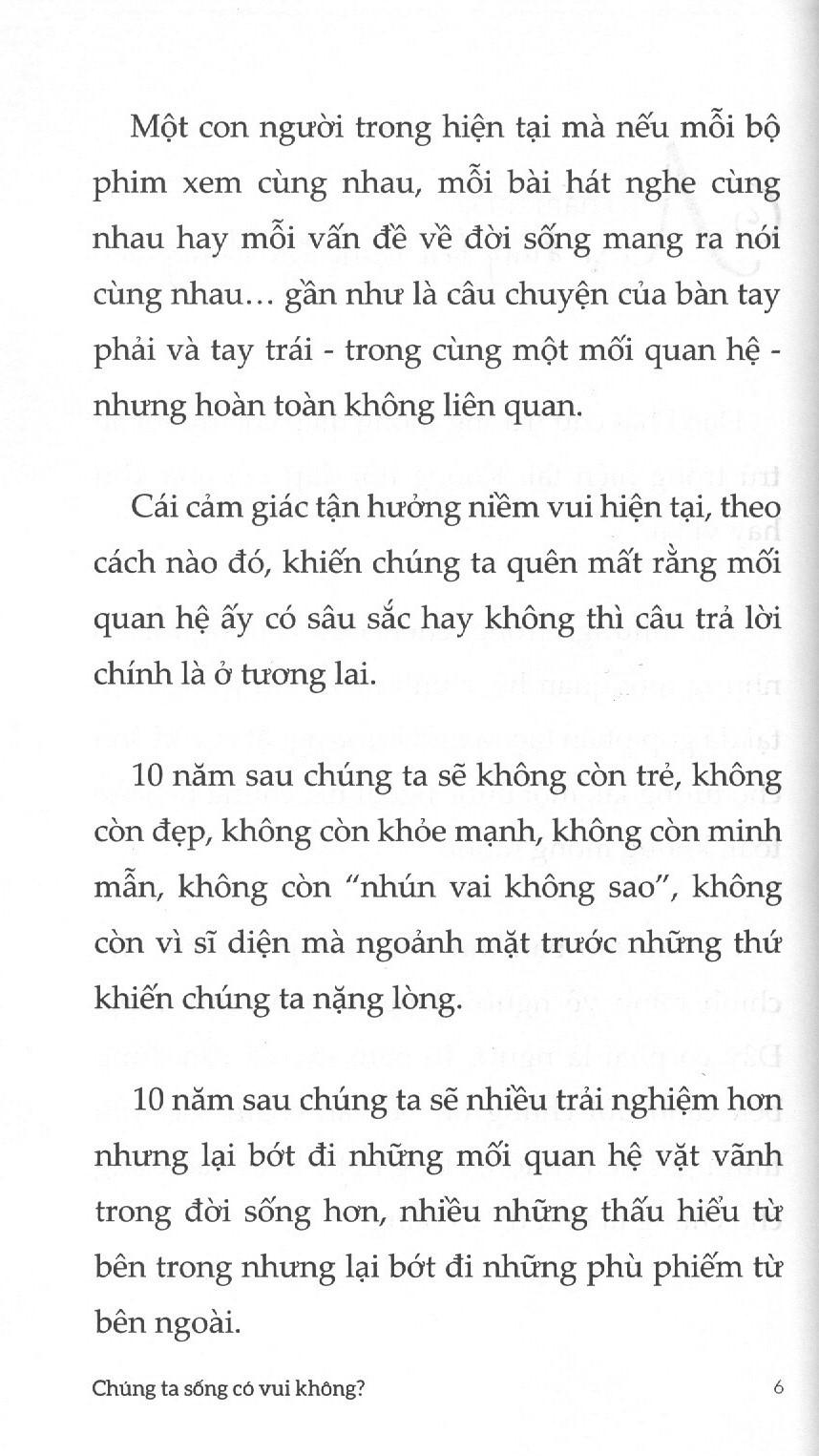 Chúng ta sống có vui không? Dù bạn đã hoặc chưa từng tự hỏi mình sẽ là cuốn sách giúp bạn tìm ra câu trả lời vì sao đã cố gắng vẫn chẳng thể hài lòng với chính cuộc sống này, mỗi câu chuyện chia sẻ lại là một lý do đơn giản nhưng đã bị bỏ quên trên con đường vội vã trưởng thành, hoặc rằng nó vẫn ở đâu đó trong lòng bạn chờ bạn mở ra cánh cửa đón nhận nó.