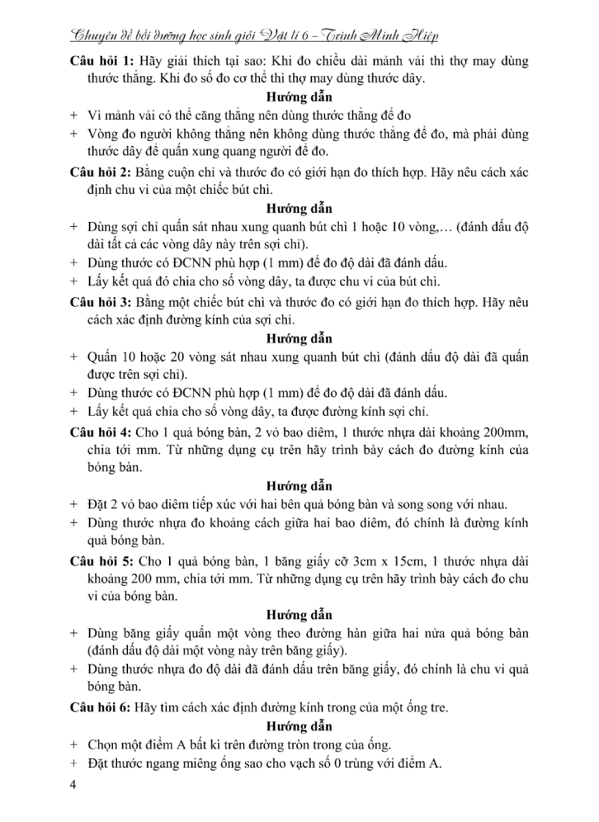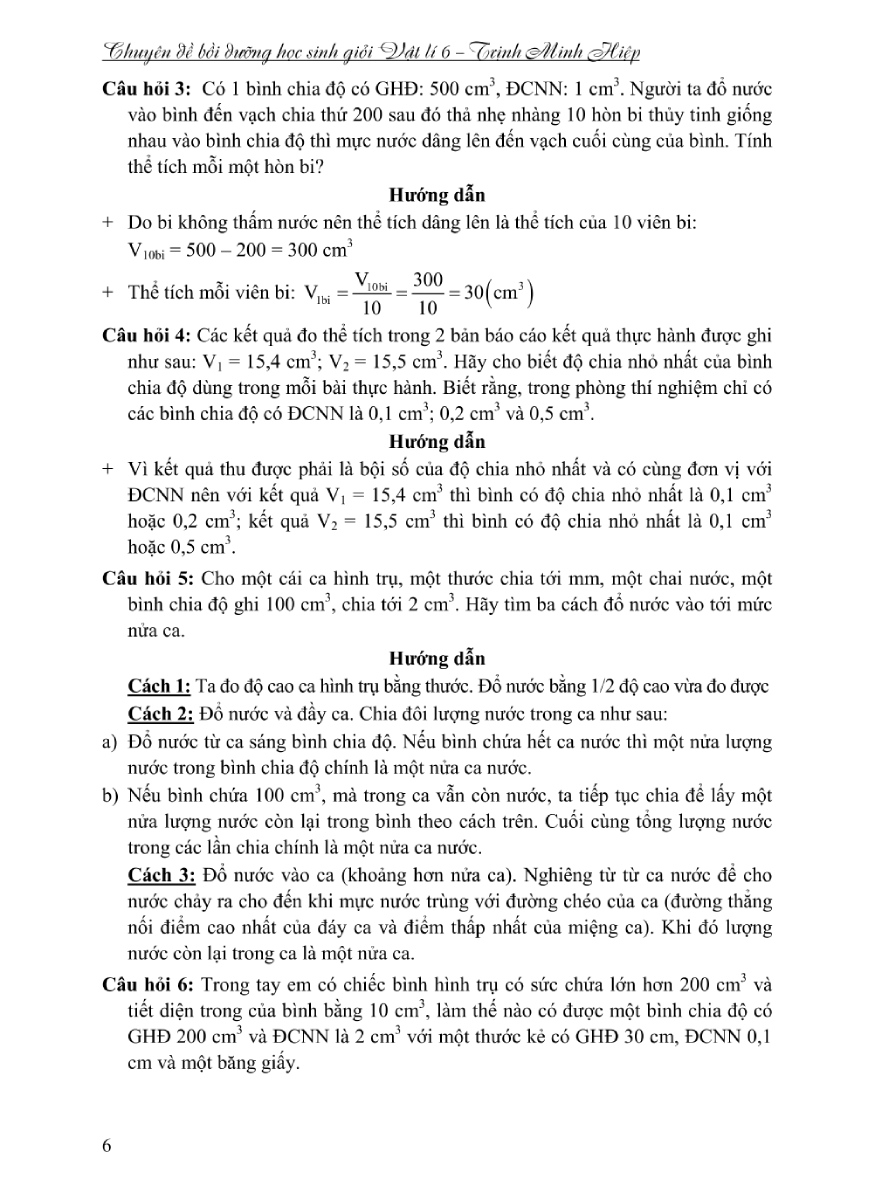 Chuyên Đề Bồi Dưỡng Học Sinh Giỏi Vật Lí 6 gồm 4 phần: